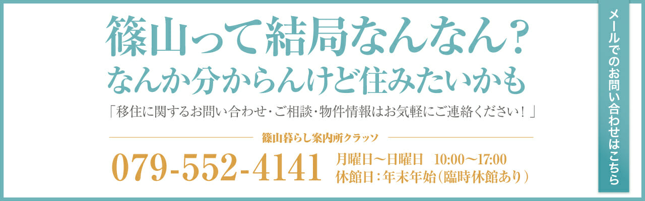 ニュース 2018年11月10日 しごとニュース 今、篠山の仕事がアツい!「企業紹介展」開催のお知らせ。 2018年11月09日 篠山にclasso! 市民の皆さん向け!「移住と空き家の勉強会」 2018年10月18日 結婚相談 ニュース 婚活パーティーのマナーを知っていますか!? 2018年10月04日 イベント 45歳からの大人婚活パーティーのお知らせ 2018年09月20日 イベント 春日神社祭礼 鉾山引き手体験ツアーのお知らせ! 2018年09月15日 しごとニュース 篠山市 最新 求人情報 2018年09月15日 イベント 激レアの王地山カフェを知ってるかい!? 2018年08月23日 イベント ベンチャー型事業継承プログラム・継業CAMP開催! 2018年08月23日 しごとニュース 平成31年度 篠山市地域おこし協力隊の募集!! 2018年08月21日 しごとニュース 8月15日 ハローワーク篠山 求人情報 2018年08月20日 篠山にclasso! 丹波篠山 夏の思い出 2018年08月12日 篠山にclasso! 「丹波篠山 有機農法はじめの一歩ツアー」実施報告! 暮らしのインタビュー Kazuma Izutsu 起業のカタチ #4 丹波路ブルワリー テラノ・サウス Yukihiro Hosotani 起業のカタチ #3 BREATH&ROY Mariko Sugio 起業のカタチ #2 レザーファクトリーSLOTH Tadashi Morita 起業のカタチ #1 古民家一棟貸しの宿「森の風土」 インタビュー 一覧はこちら 篠山で暮らす G567 賃貸価格:8万円/月 地区:城南 詳しく見る G566 売却価格:800万円 地区:篠山 詳しく見る B93 売却価格:400万円 地区:大山 詳しく見る G565 賃貸価格:6.1万円/月 地区:岡野 詳しく見る B92 売却価格:300万円 地区:篠山 詳しく見る G564 賃貸価格:4.5万円/月 地区:八上 詳しく見る G563 賃貸価格:5.6万円/月 地区:城南 詳しく見る G562 賃貸価格:5.2万円/月 地区:城南 詳しく見る 物件情報をもっと見る