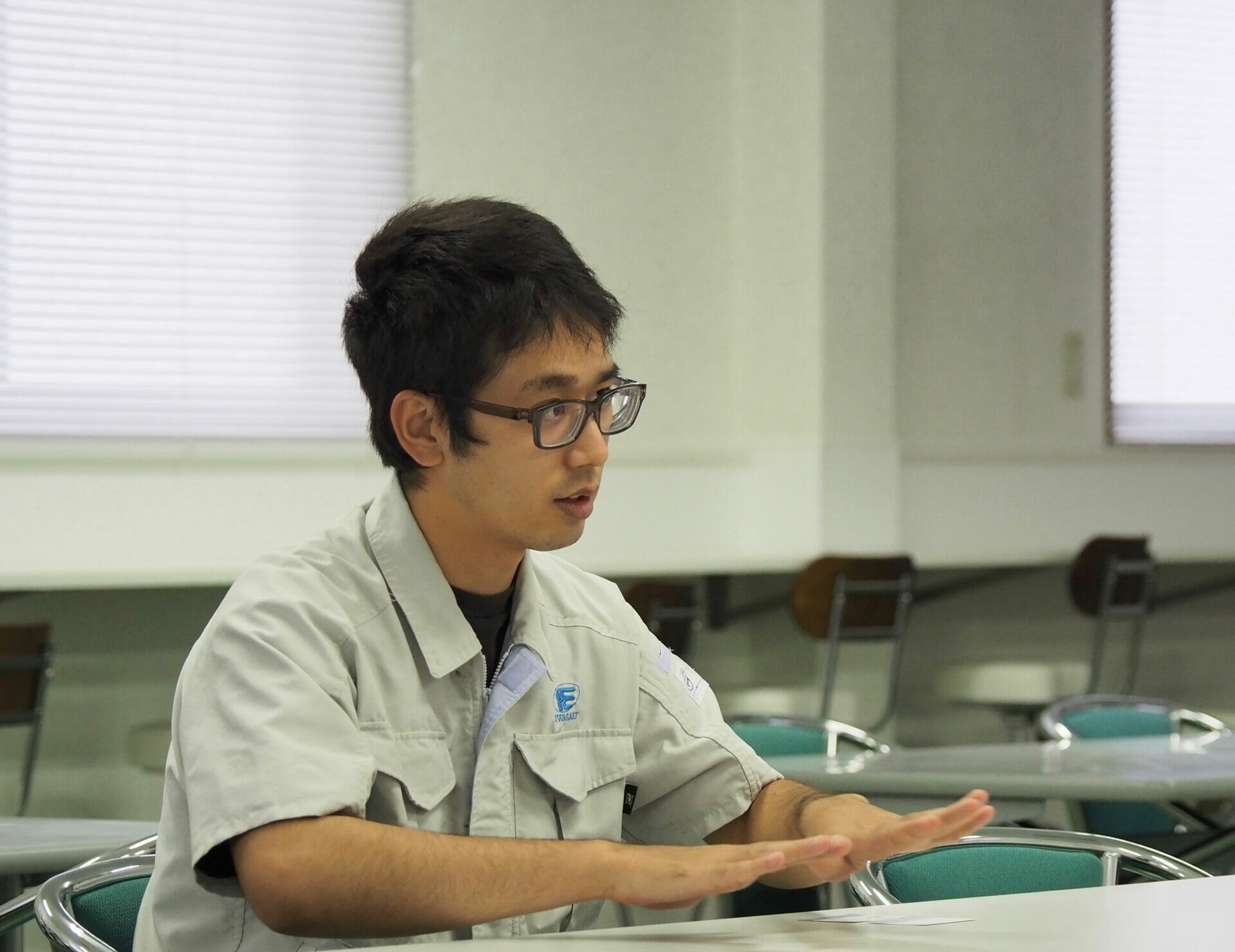 「大阪では、施工管理の仕事で選考を受けていました。ただ学校では電子工学を学んでいたので、その経験を活かして働きたいなと考えていました。あと、僕はモノづくりに携わりたかったんですよ。」