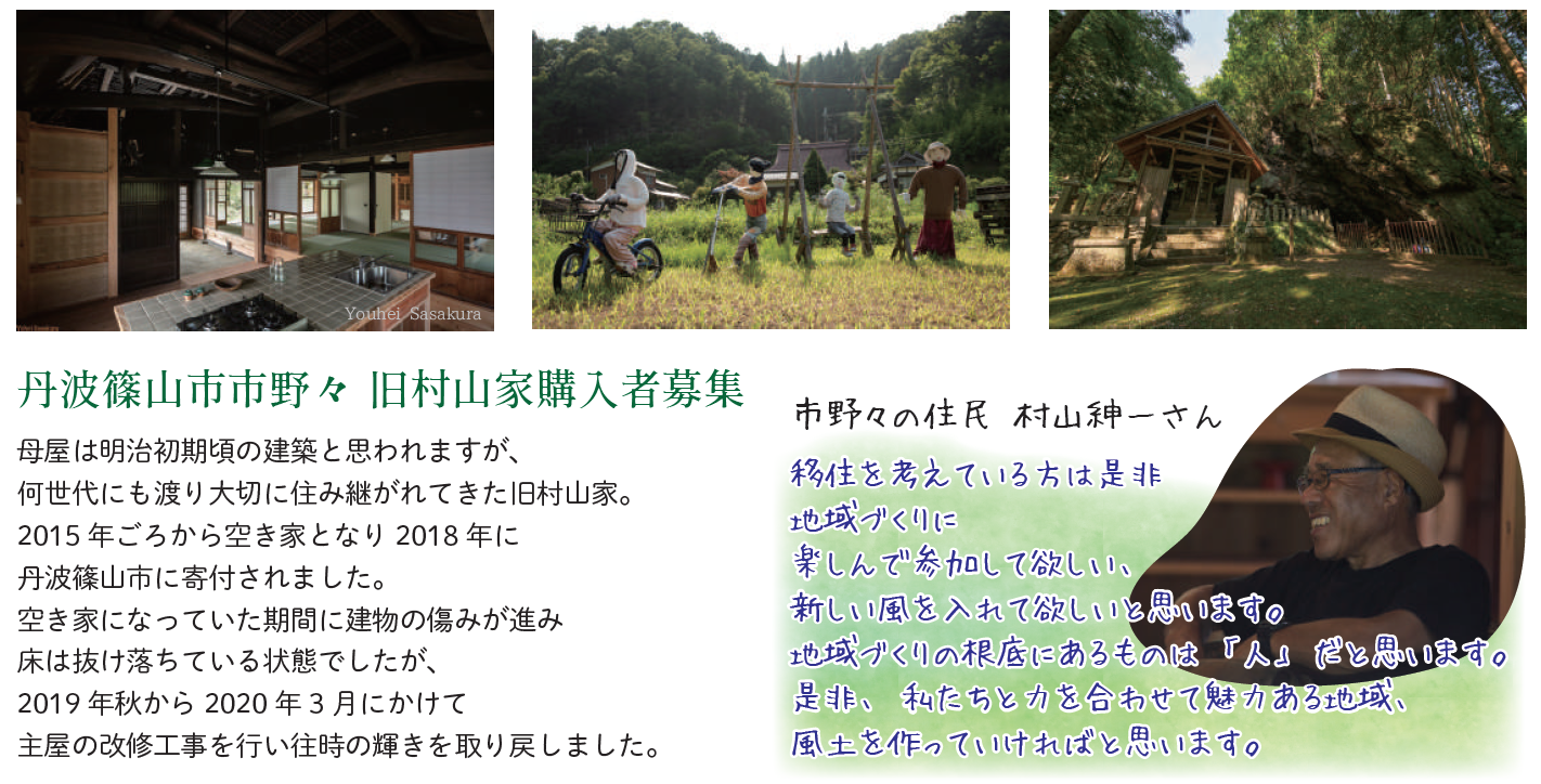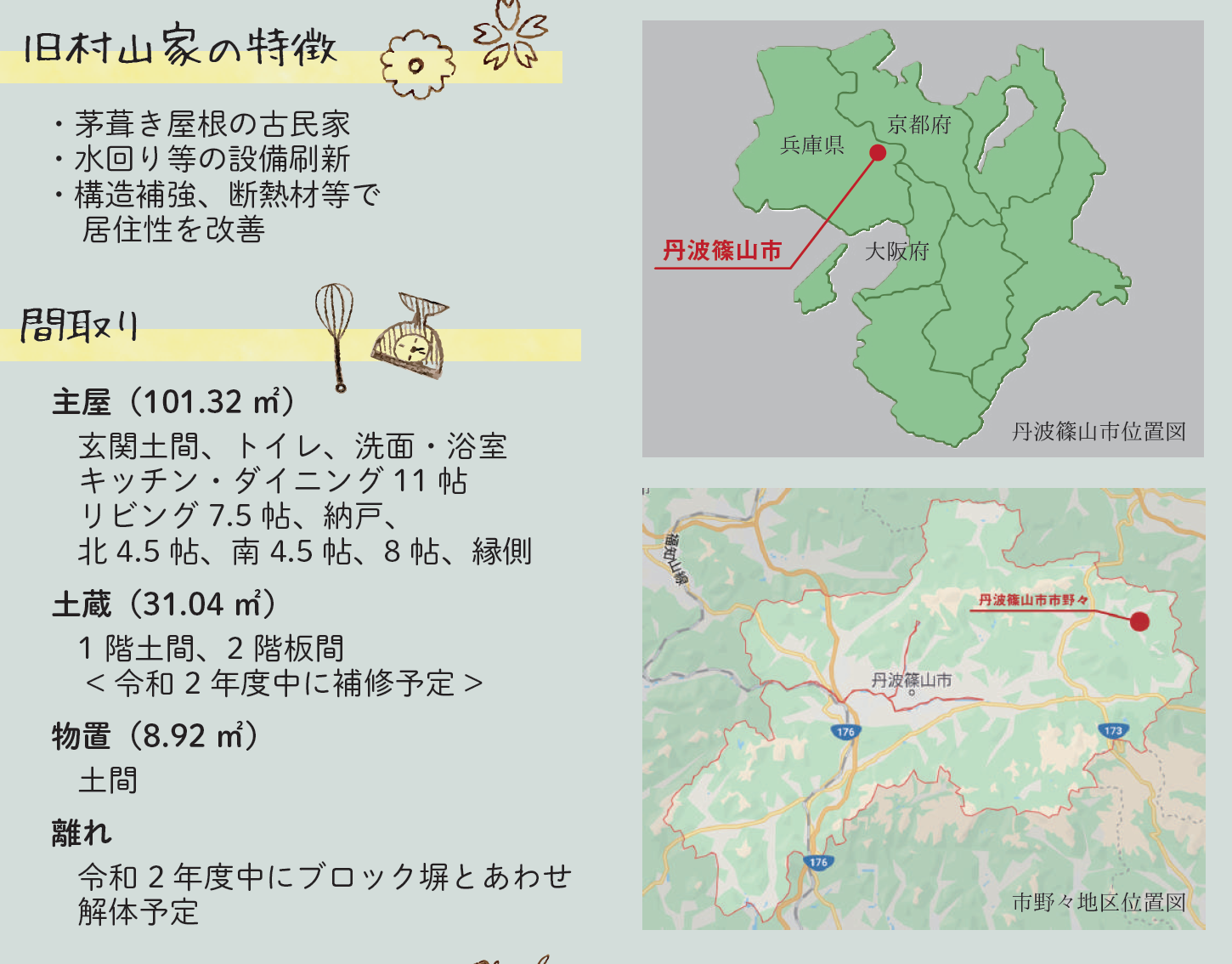丹波篠山市「大芋地区 市野々」の山裾の小高い位置にある旧村山家は佇んでいます。