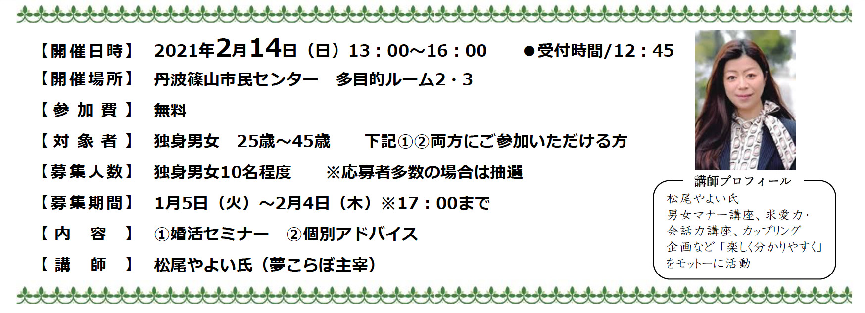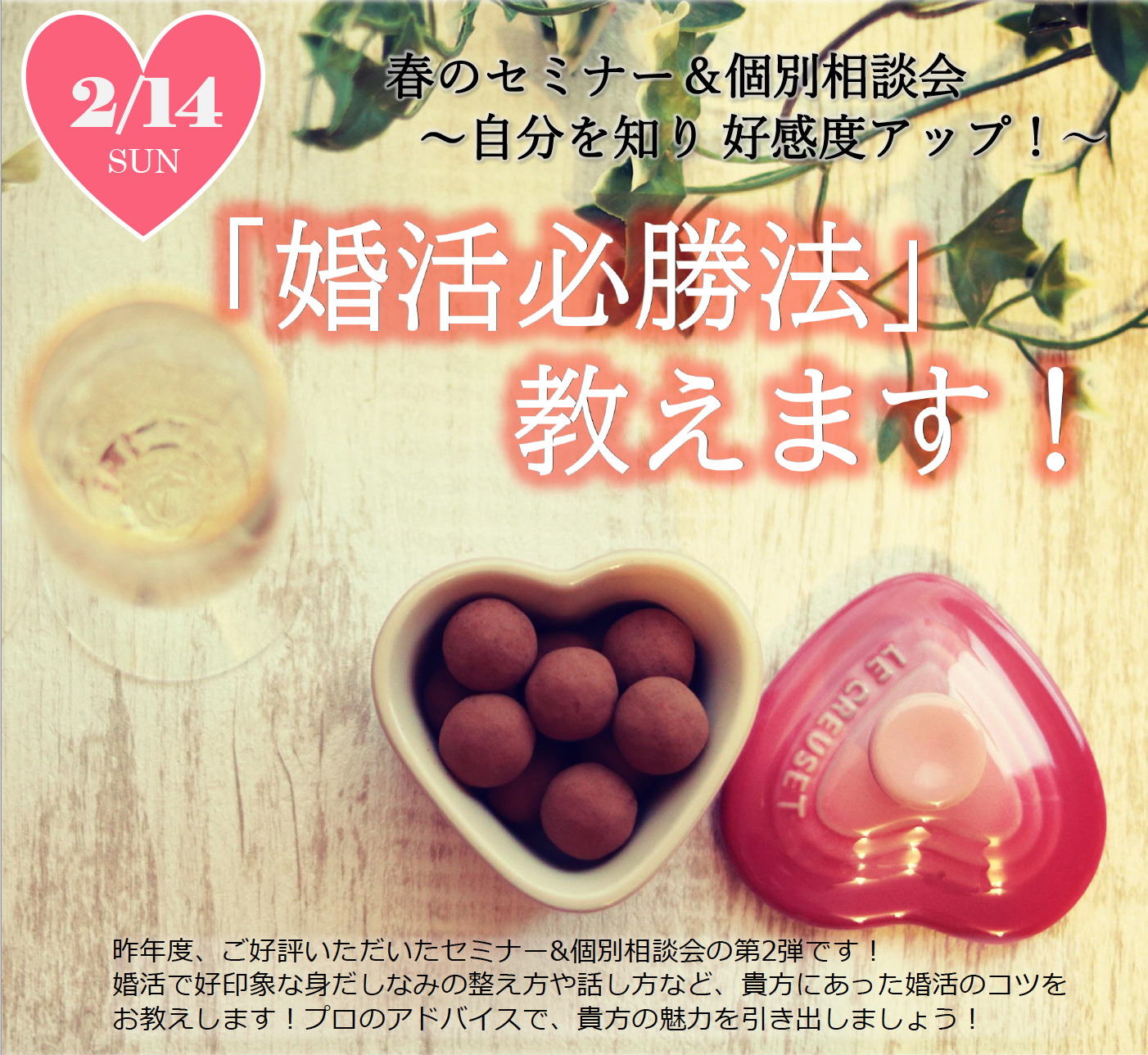 婚活の必勝法が学べるセミナー開催されます。この機会に新たな一歩を踏み出してみてはいかがでしょうか?