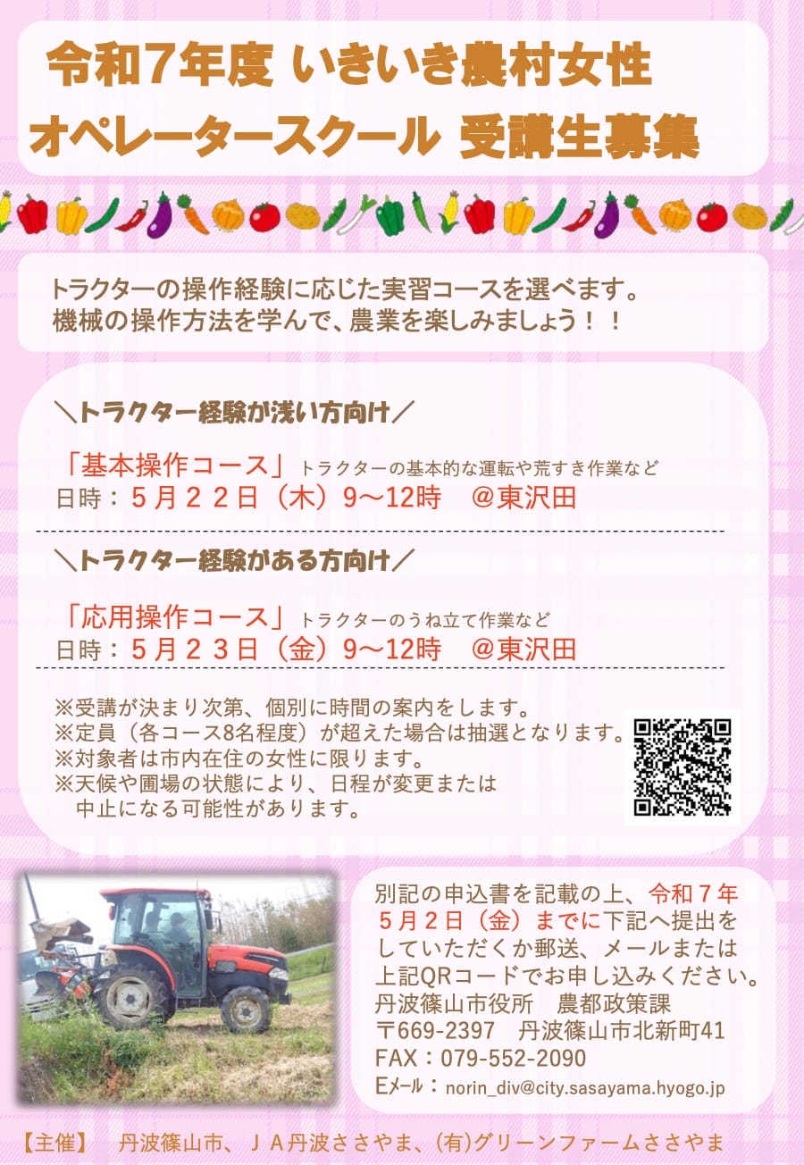 【募集】令和7年度いきいき農村女性オペレータースクール/丹波篠山市
