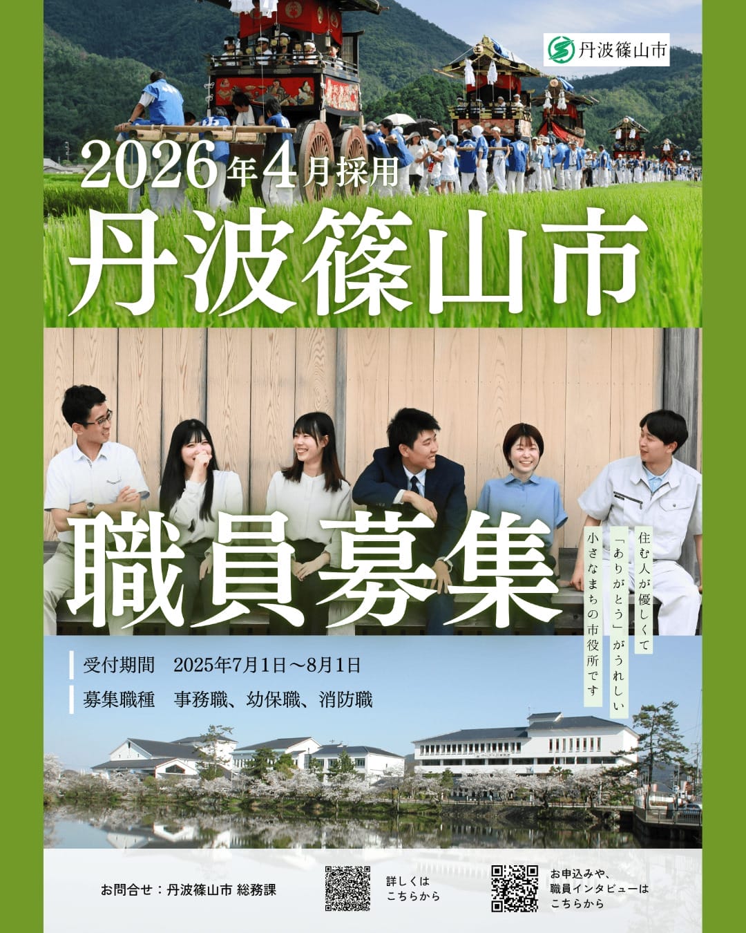 丹波篠山市役所では、2026年4月採用の正規職員を募集しています。