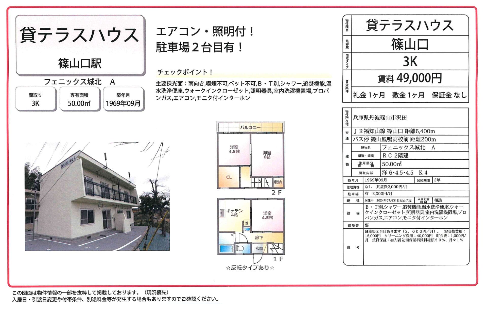| 特記事項 | 駐車場2台目あります(2. 000円/月)。 鍵交換費用: 15,000円 クリーニング費用:40,000円 町会費:1,000円/ 月 賃貸保証:加入要 初回保証料賃料総額50%、月々1% | ||