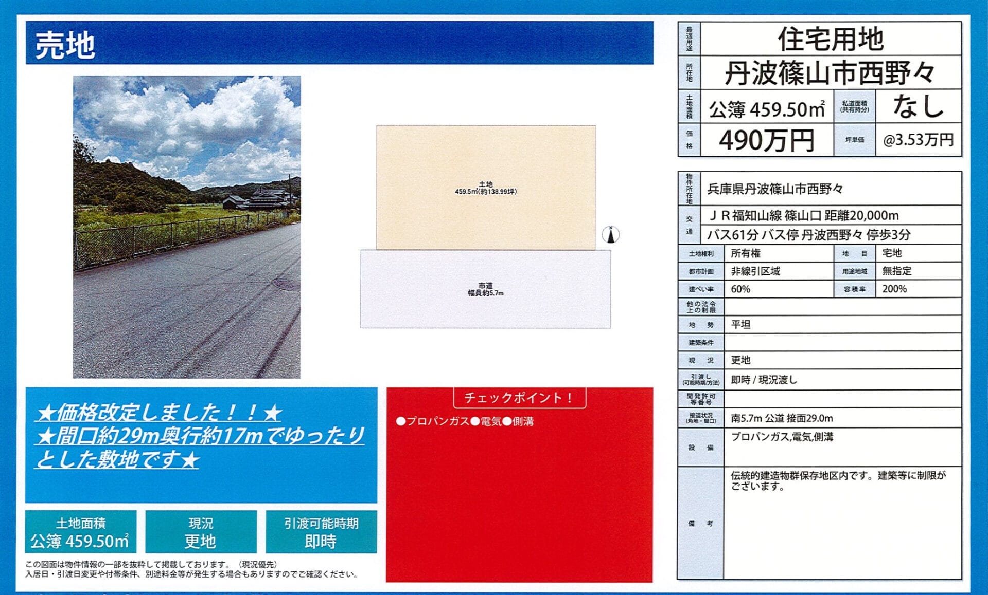 | 土地面積 | 459.50m2 | ||