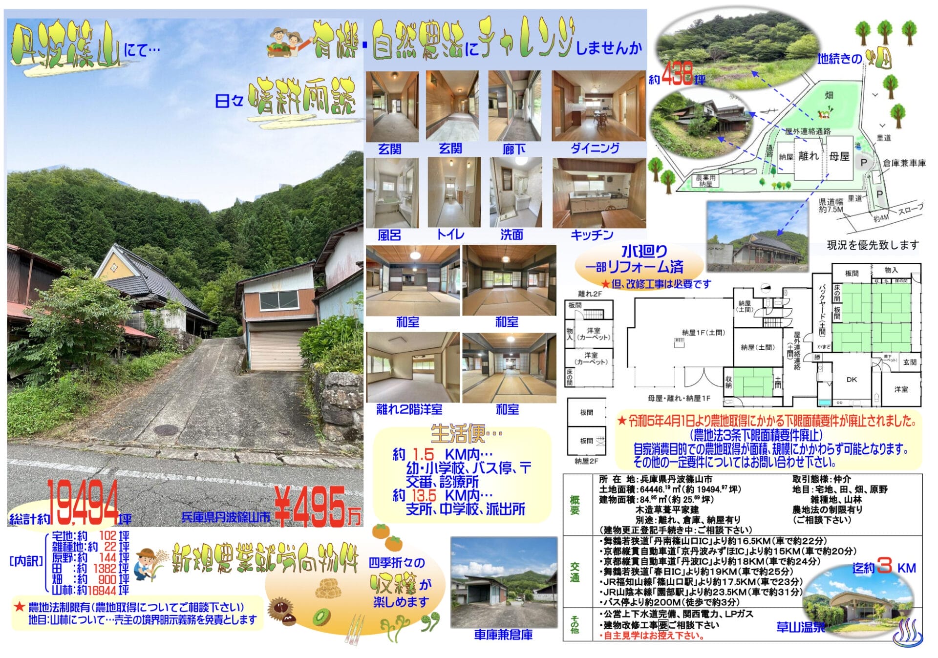 | 特記事項 | ・建物改修工事要ご相談下さい。・自主見学はお控え下さい。農地法3条申請要 | ||
