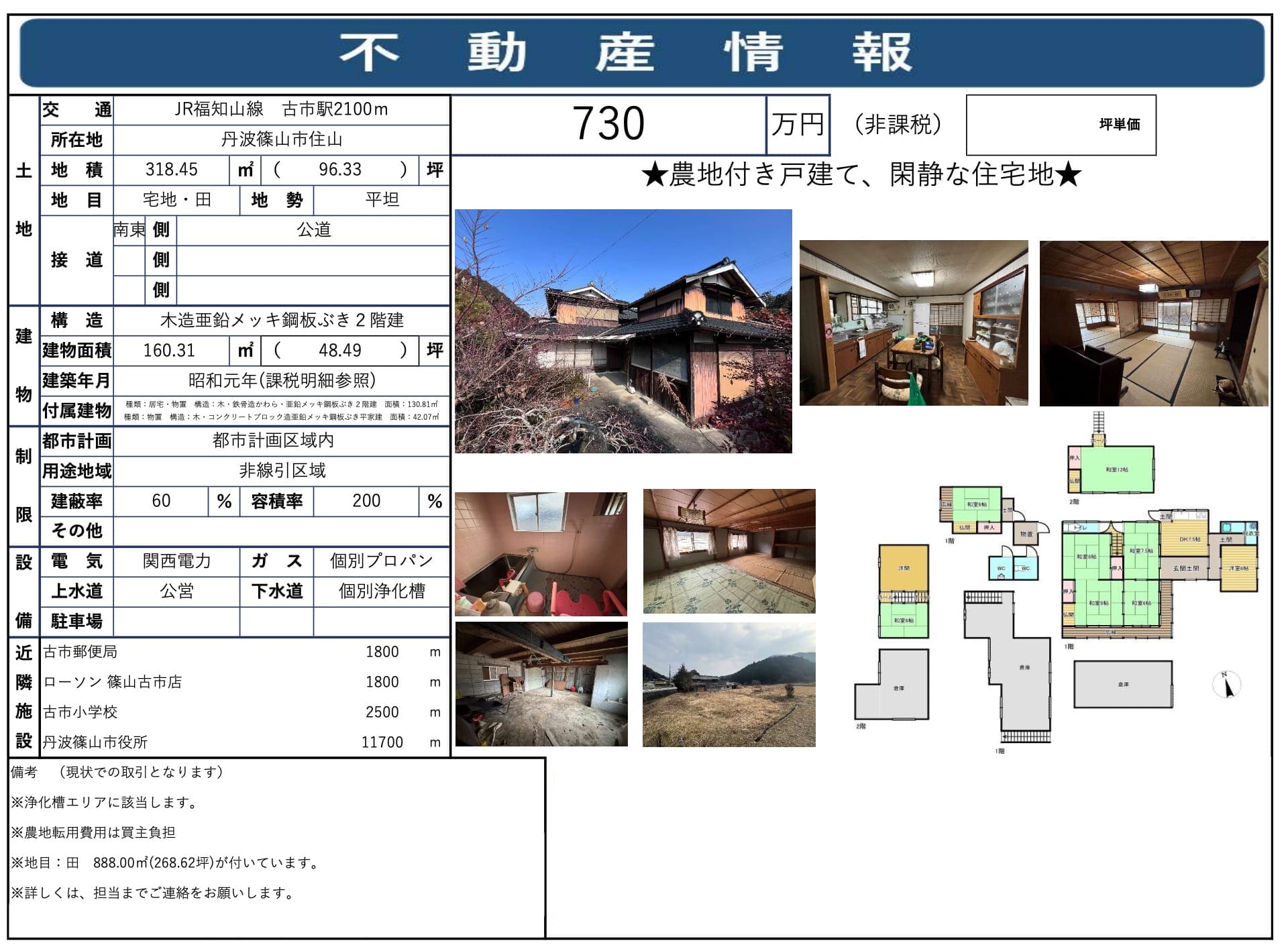 | 交通 | JR福知山線「古市駅」より約2.100m | ||