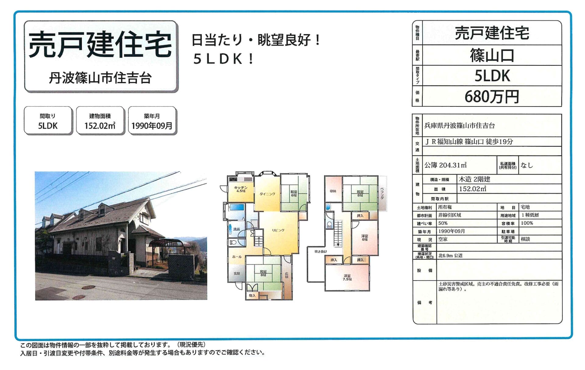 | 特記事項 | 土砂災害警戒区域・売り主の不適合責任免責・改修必要(雨漏り等あり) | ||