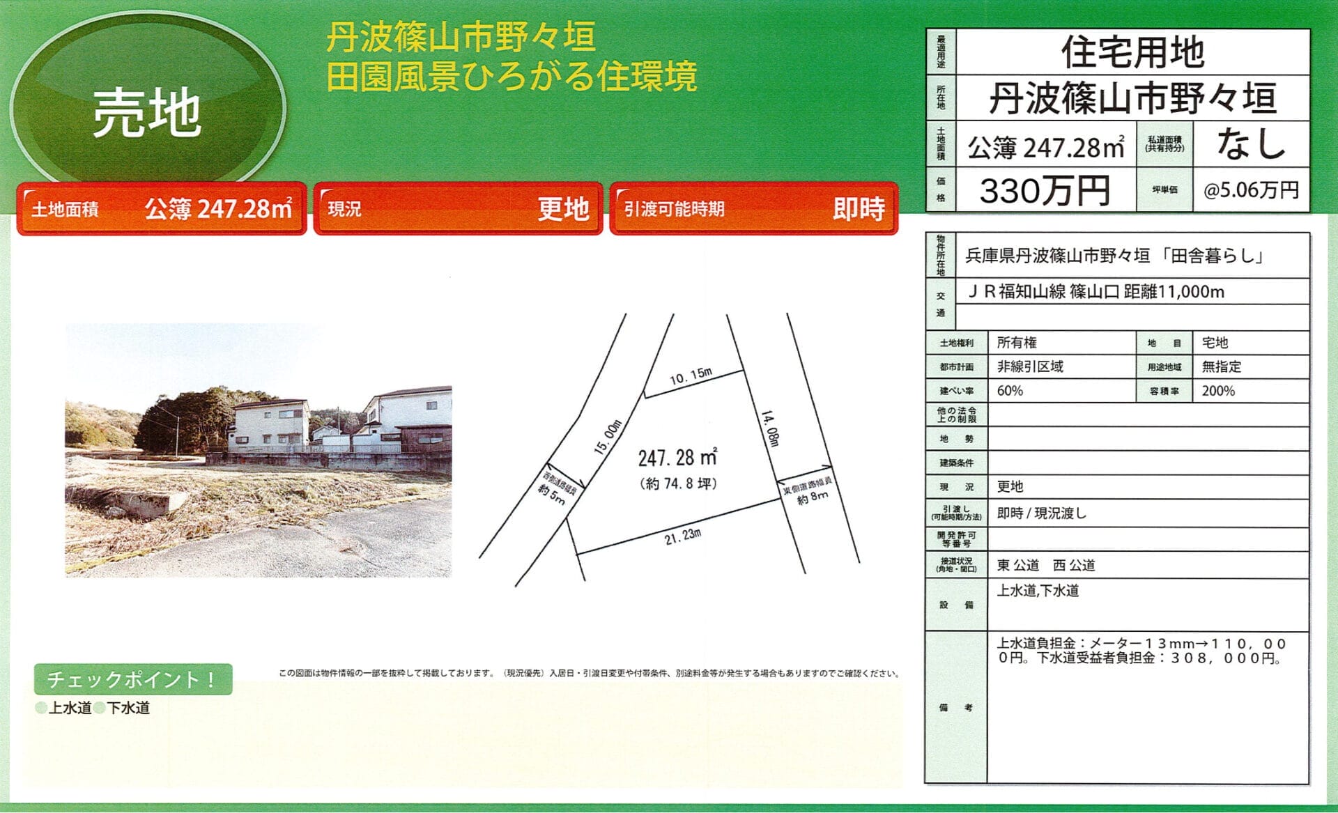 | 特記事項 | 上水道負担金:メーター13mm→110,000円・下水道受益者負担金:308,000円 | ||