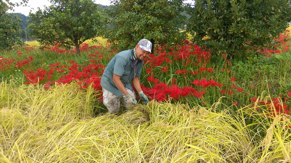6月の忙しい時期から勤め、何もわからないまま言われたとおりに動く毎日が続きました。暑い中での作業中、持参した飲み物も全て飲み干してしまい、田んぼの水が「美味しいコーヒー牛乳」に見えて飲もうとして止められたことは、今でも覚えています。それぐらいキツかった。それまでは、冷暖房完備の中で仕事をしていましたから、外の仕事がこんなにハードだとは想像していなかったです。スポーツ根性もあって、辞めたらあかん!と思って頑張りました。丹波たぶち農場さんでは常勤で3年お世話になりました。丹波篠山の農家さんのやり方を1から教えてもらい、就農経験の最初が丹波たぶち農場さんで本当に良かったと思っています。働いているうちから、自分の田んぼも少しずつ手掛けて、就農への思いは変わることなく準備していました。初めて自分の田んぼで収穫した時は、嬉しすぎて、めっちゃ泣きました。ホンマに感動した、その気持ちは忘れてはいけないと思っています。今は筱見のやり方も取り入れ、自分なりのアレンジを加えた中岡流の農業を実践しています。