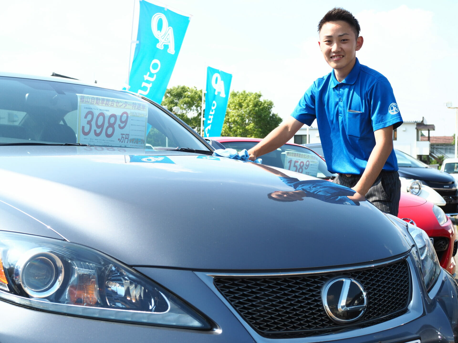 「上司や先輩方の商談に同席させていただいたり、納車前の車の手入れや洗車をしたりしています。そして一番勉強していることは、社会人マナーについてです。電話対応の話し方など、社会人としてしっかり対応ができるようになりたいです。そして、いつかクインオートで№1の営業成績を出すことが目標です。」