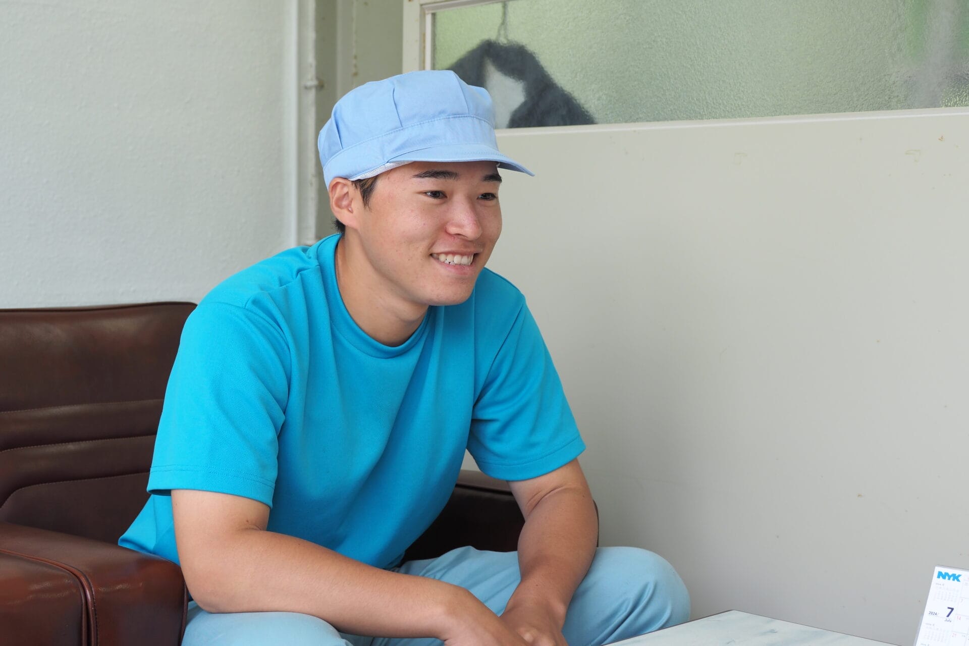 現在、私の部署では9月から始まる日本酒の仕込みに向けて、酒米を水に浸し、蒸し上げる原料処理作業を5名のチームで行っています。周りは年上の方が多いですが、皆さん親切に仕事を教えてくれるので、仕事に集中して取り組めています。入社2年目で、今は日本酒製造の全体的な流れを学んでおり、将来的には一人前の酒造りのプロを目指しています。