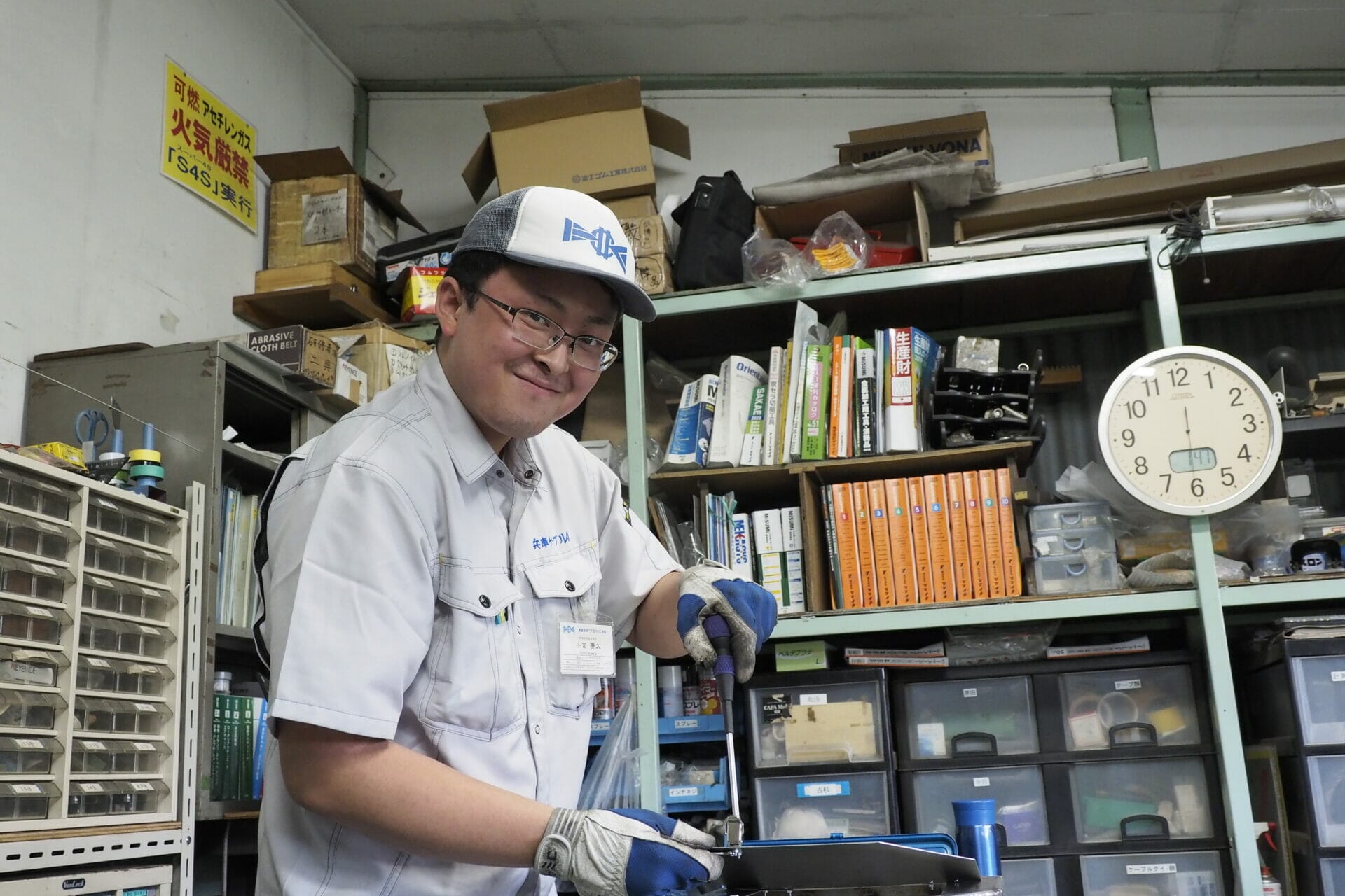 今は研修期間なので、いろいろな現場を回って作業をしています。年齢の近い先輩が4〜5人いて、ほとんど篠山産業高校卒業の方なので、共通の話題があって話しやすいです。他の先輩方からも親切にわかりやすく仕事を教えてもらっています。自分も早く先輩方のように仕事ができるようになりたいです。