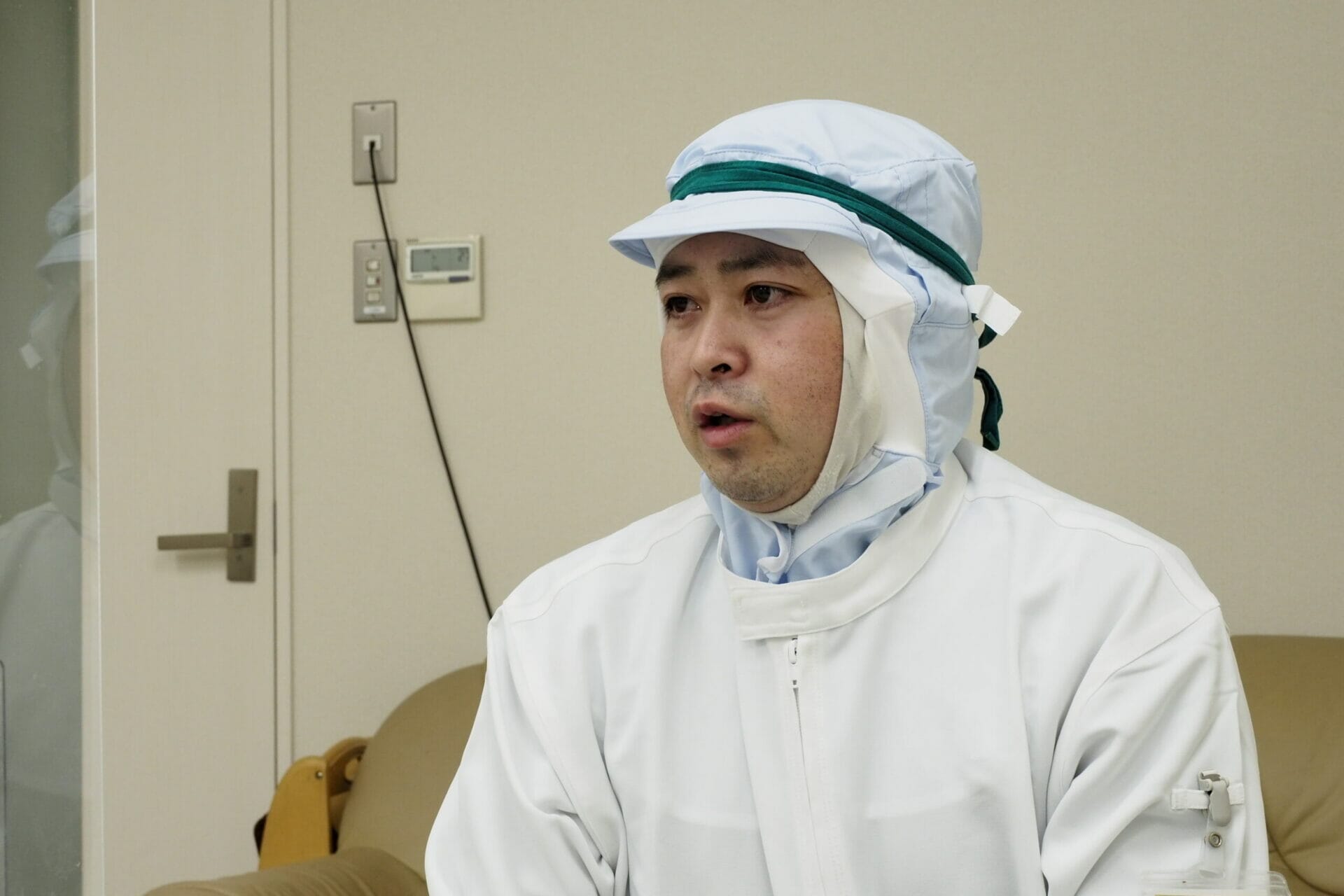 「仕上げ」の部署で、クリーム絞りなどを担当しています。ライン作業で流れてくる商品に、クリームを同じように絞ります。そのライン管理をすることも僕たち社員の仕事で、今50人のメンバーを見ています。判断を誤るとメンバーに迷惑がかかるので気を付けています。