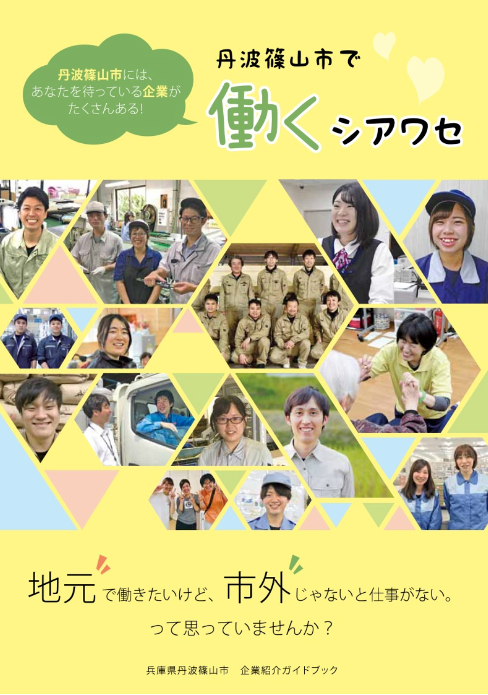 「実際に働いている先輩の声」や、「地元で働くシアワセについて」などを掲載しています。市内全戸配布を行い、篠山口駅、丹波篠山市民センター、丹波篠山市役所、各支所にも設置しています。