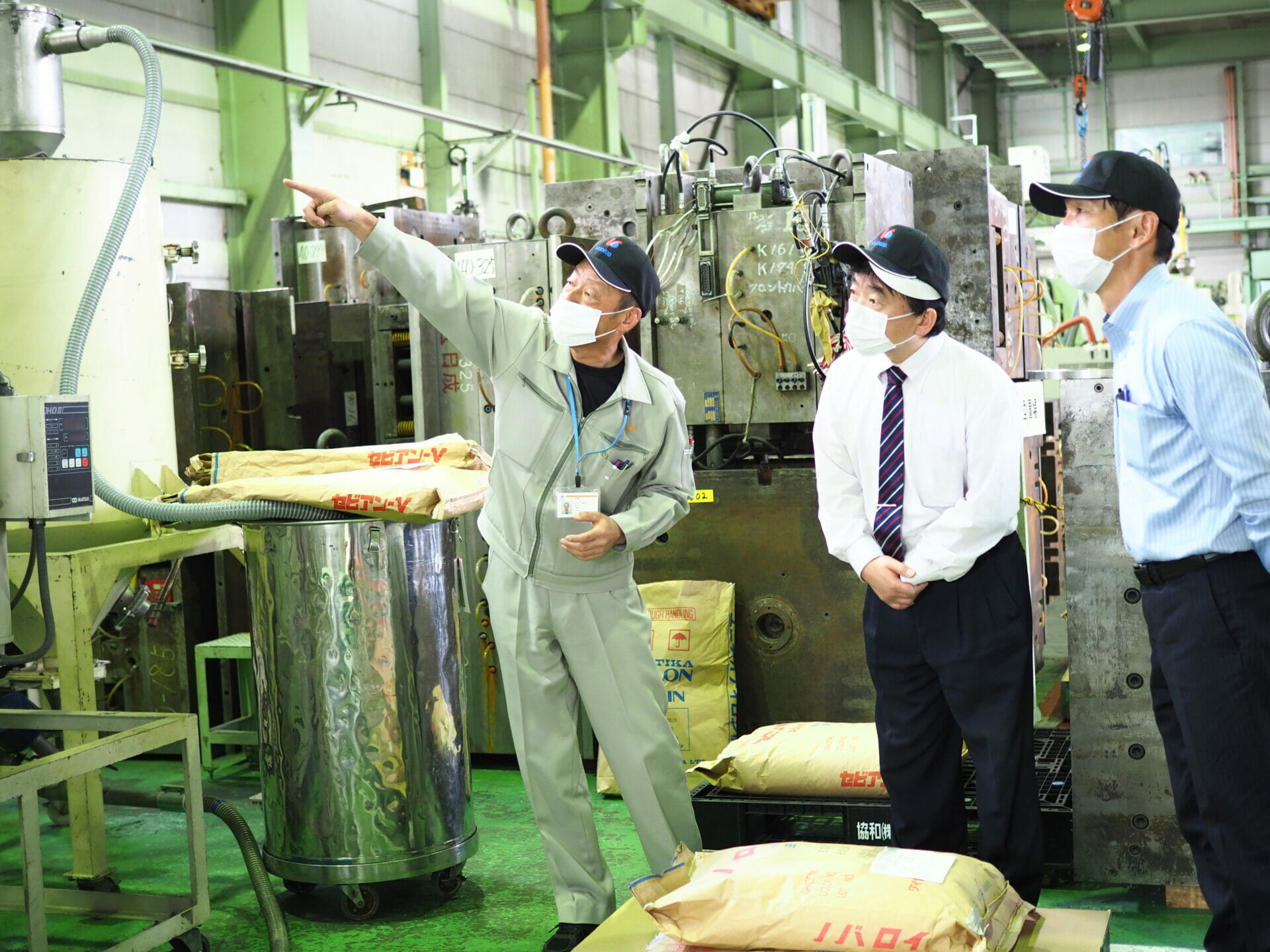 就職指導に役立ててもらうため、市内高校の教職員を対象に企業見学会を実施。